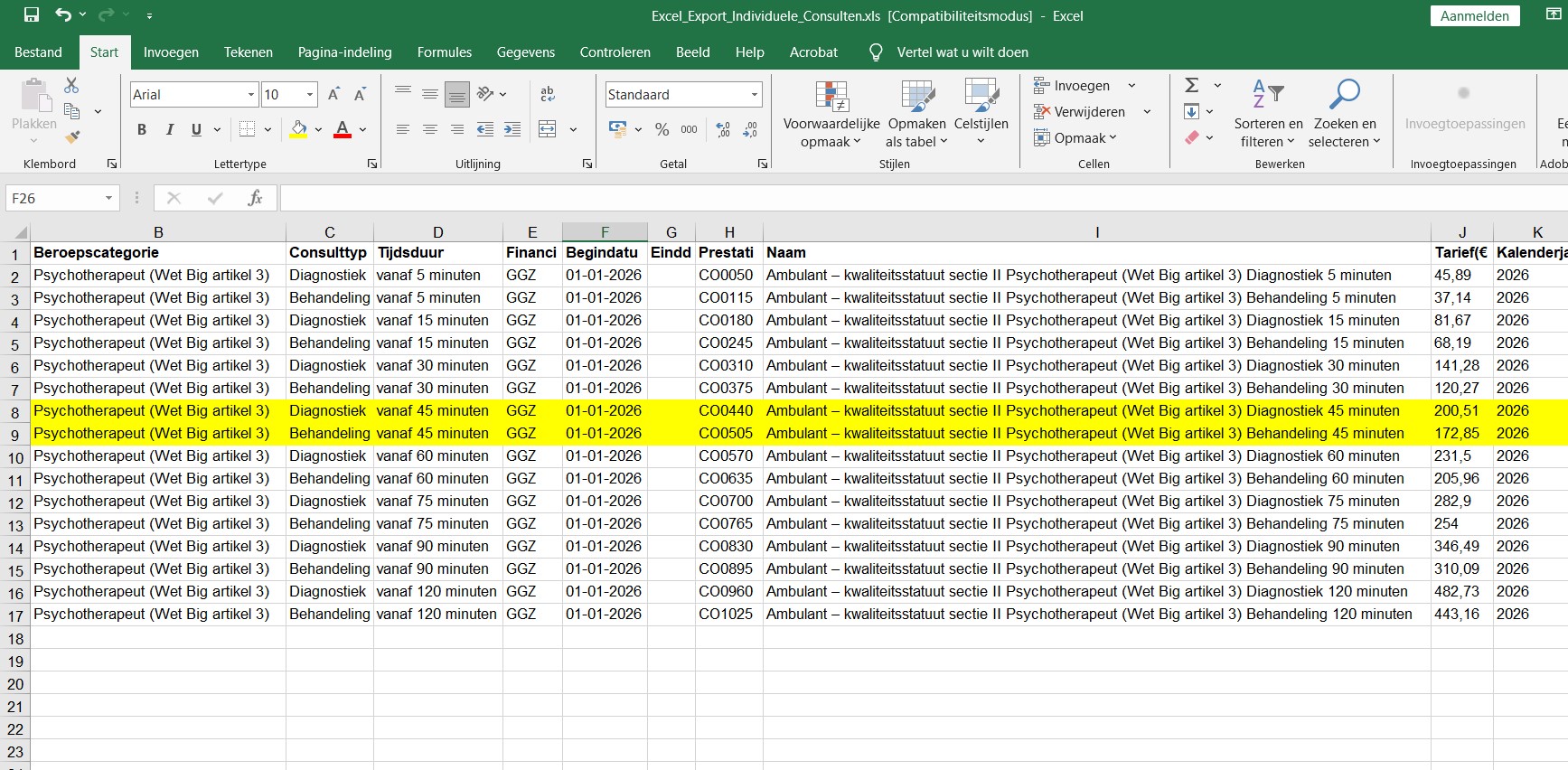 Indien u de kosten zelf dient te betalen (bij niet gecontracteerde zorg), wordt 100% van het NZa tarief in rekening gebracht.
