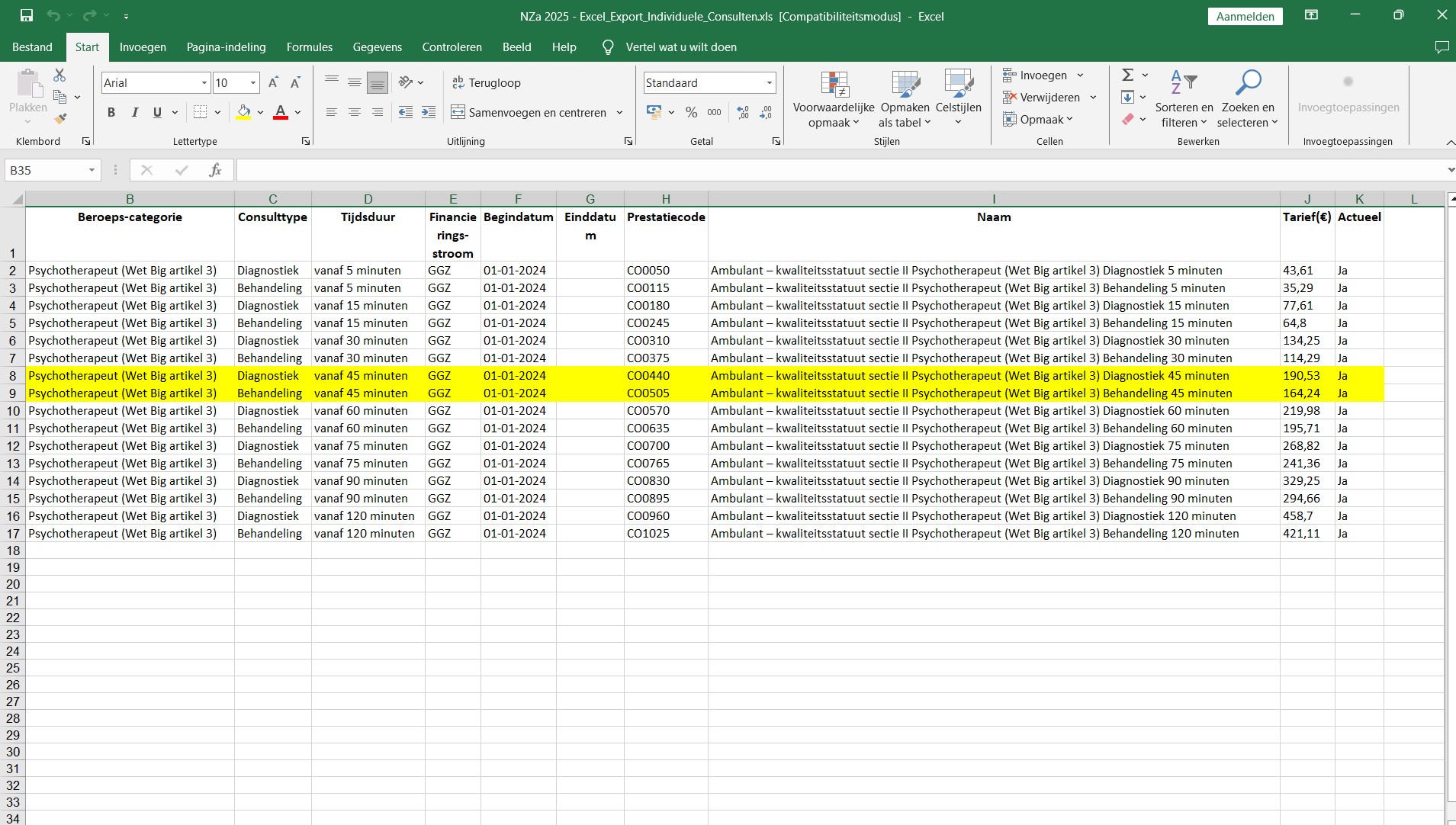 Klik hier voor een beknopte versie van de NZa tarieven.